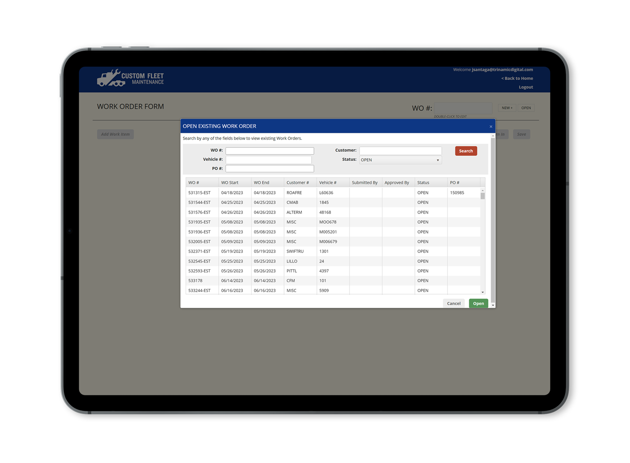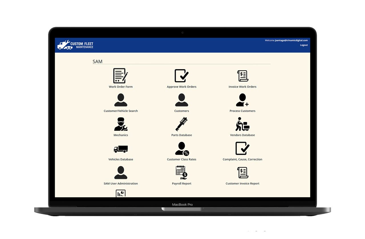 Custom Fleet Maintenance is an established provider of 24/7 Semi Truck, Trailer and Reefer Unit repair services. CFM required a new invoicing application to fuel their business – Trinamic Digital Solutions stepped in to assist.