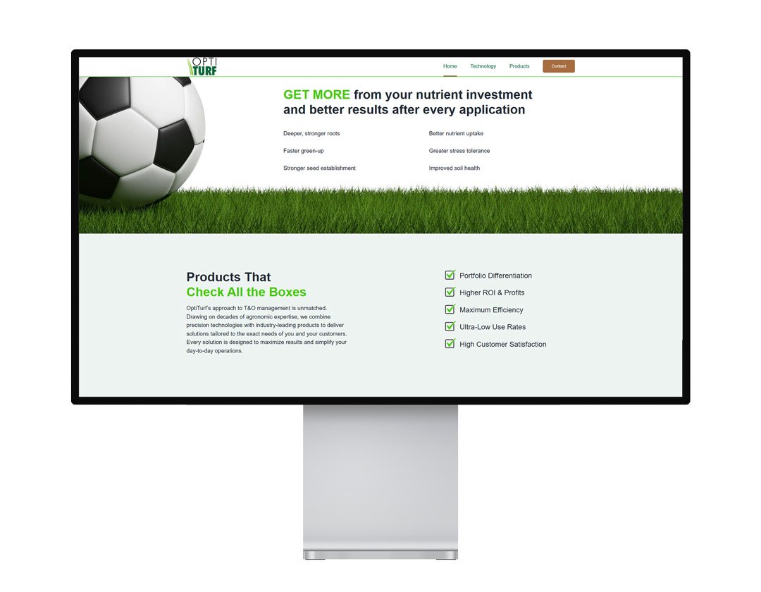 Opti-Turf is a professional lawn care and agricultural fertilizer, weed control, and seasonal turf treatments supplier for residential and commercial properties. Opti-turf.com, is designed to clearly communicate their services, service areas, and commitment to healthy, well-maintained lawns, while making it easy for customers to request quotes, schedule services, and learn about proper turf care.